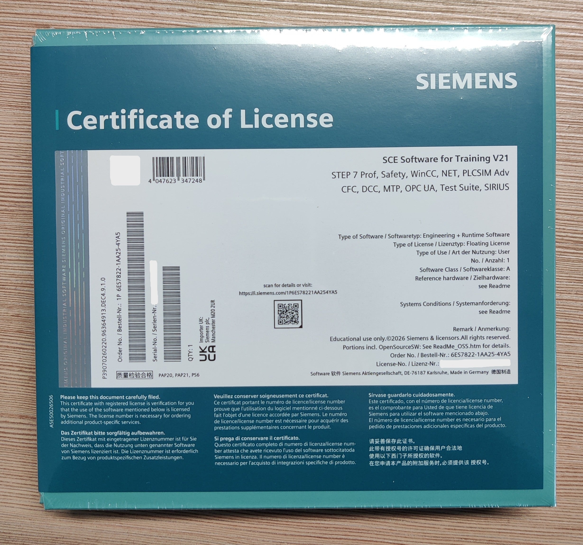 Siemens SCE SW for Training V21 Nr. 6ES7822-1AA25-4YA5